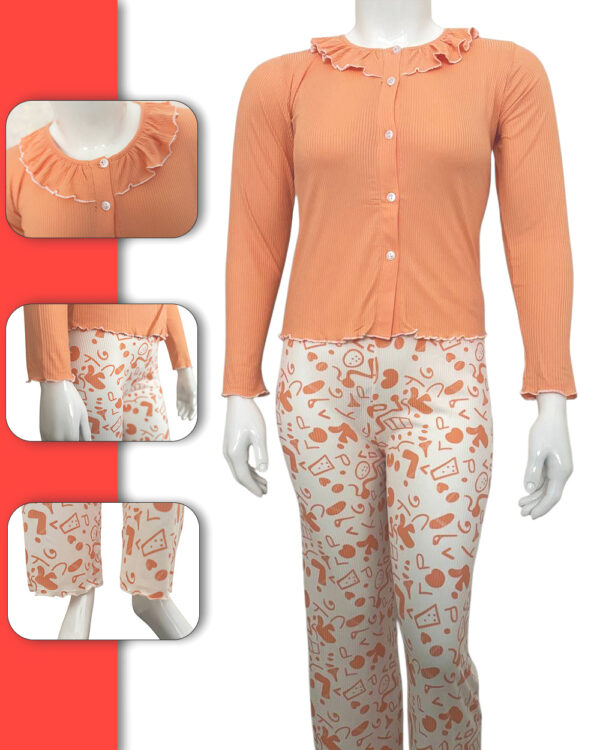 اختاري لوك أنيق وأنثوي فالدار بهاد البيجاما النعامة والراقية، بلمسة كشكشة رقيقة على الكول والأكمام 💕👚